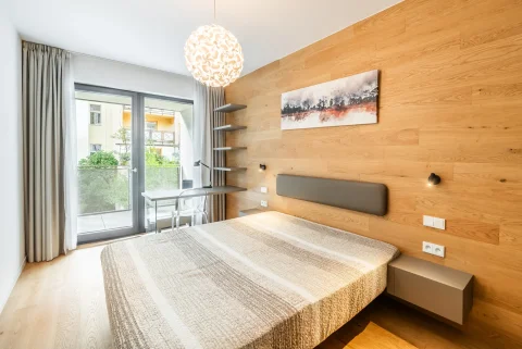 Interiéry bytů splňují nejvyšší standardy dnešní doby. Klimatizace ve všech obytných místnostech Vám zajistí příjemné prostředí i v horkých letních dnech, moderní kuchyně na míru s kvalitními spotřebiči nabízí komfort pro každodenní život. Vestavěné skříně a velkorysé komory promění každý kout v praktický úložný prostor – konečně místo na vše, co k životu potřebujete. V menších bytech 1+kk a 2+kk oceníte i pečlivě vybraný solitérní nábytek, který dotváří domácí atmosféru.